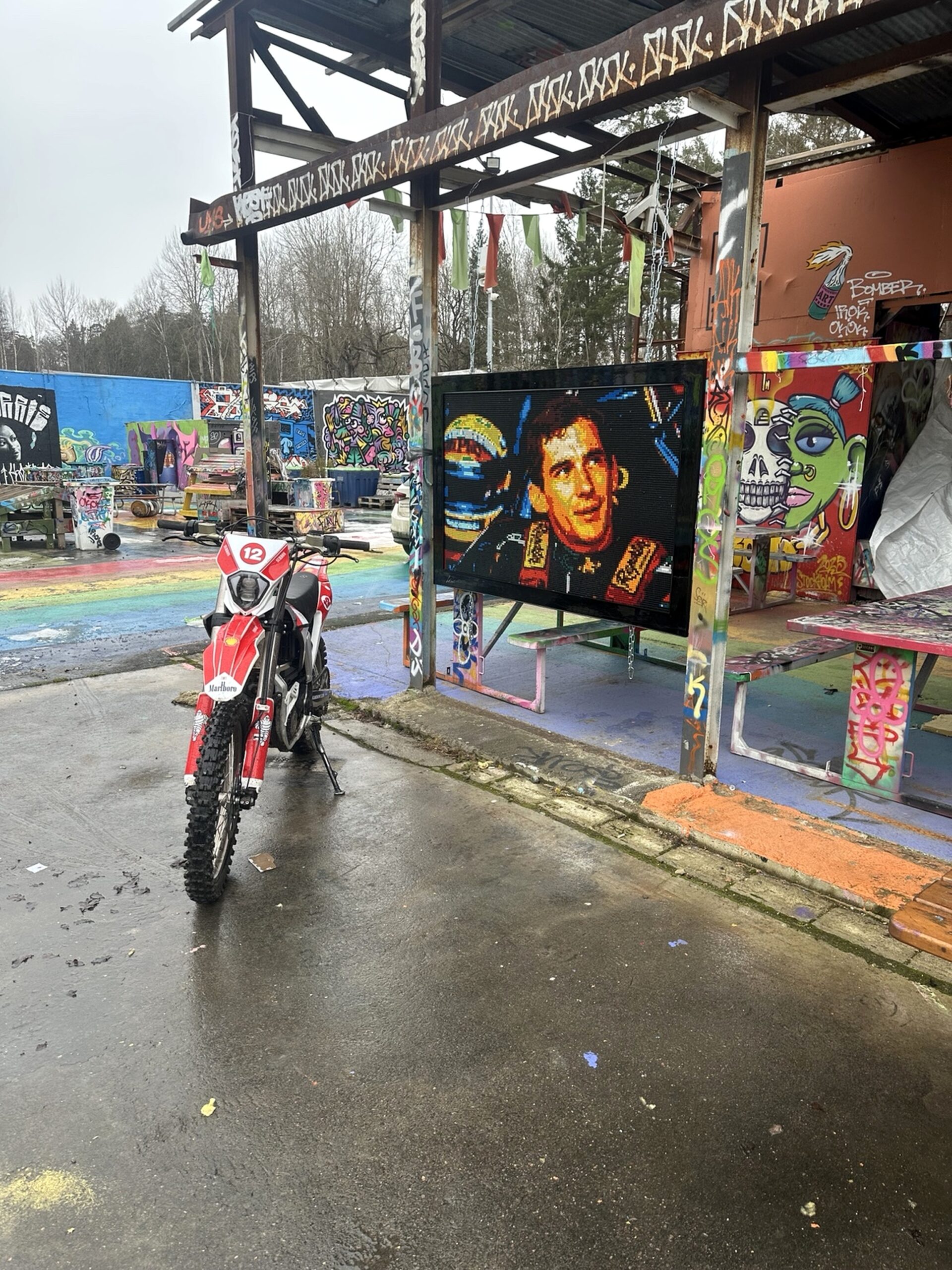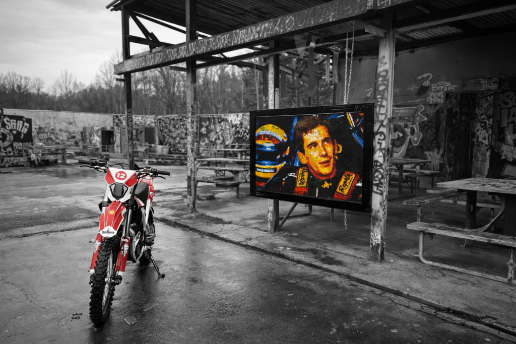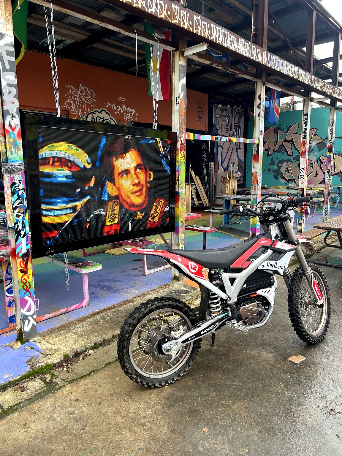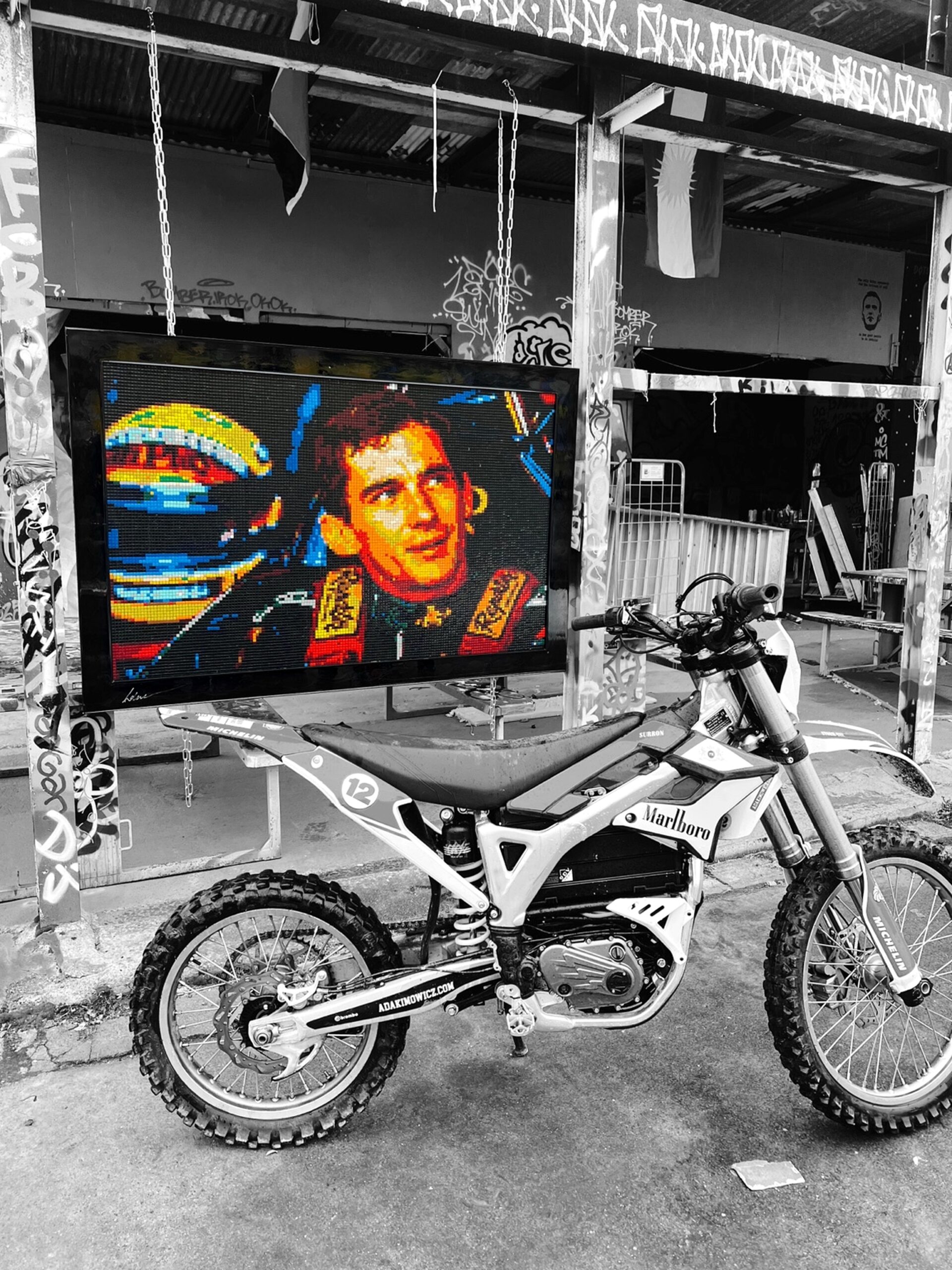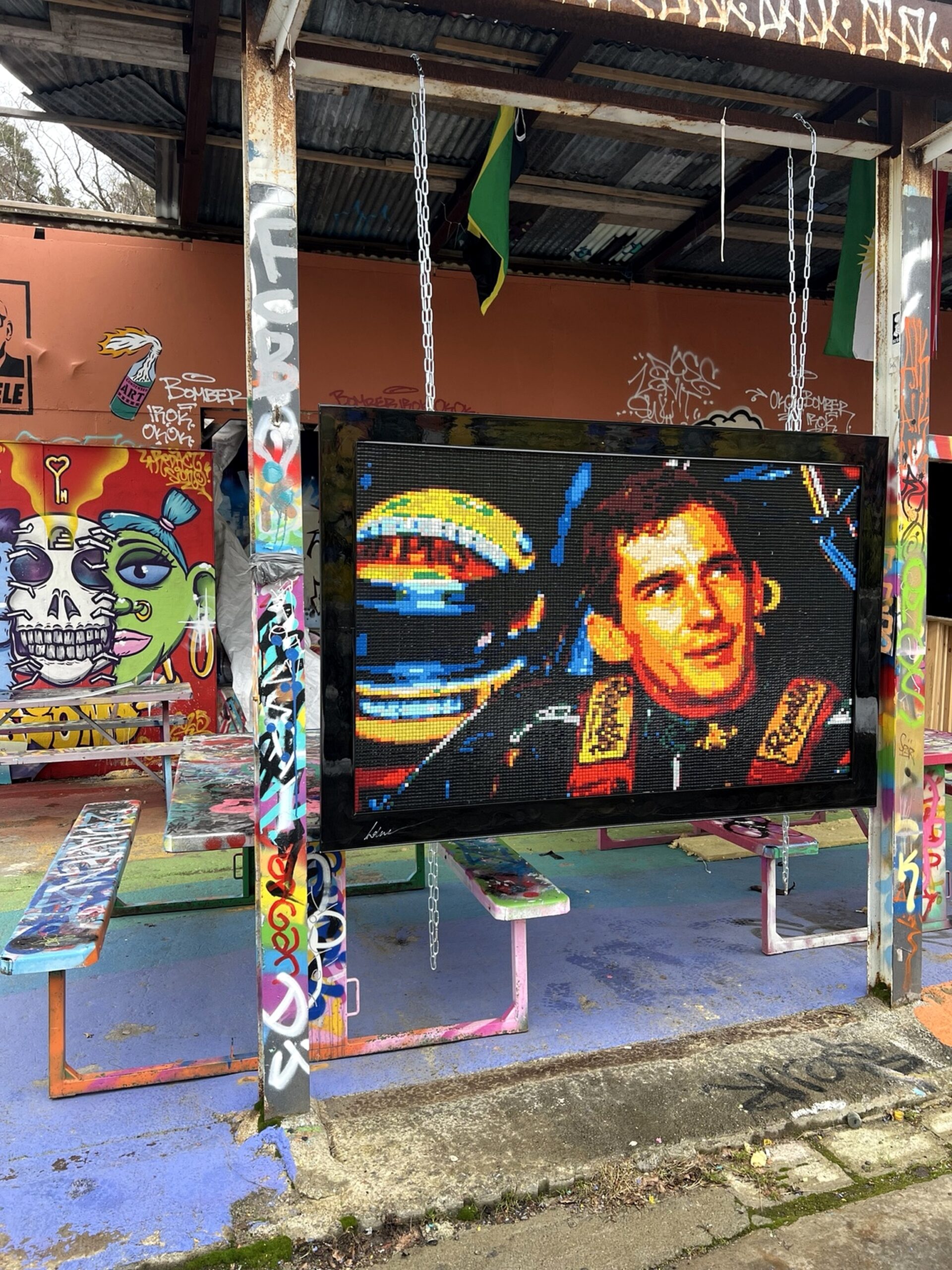 The mosaic is based on a photograph by Mike King, taken during practice for the Brazilian Grand Prix 1986.